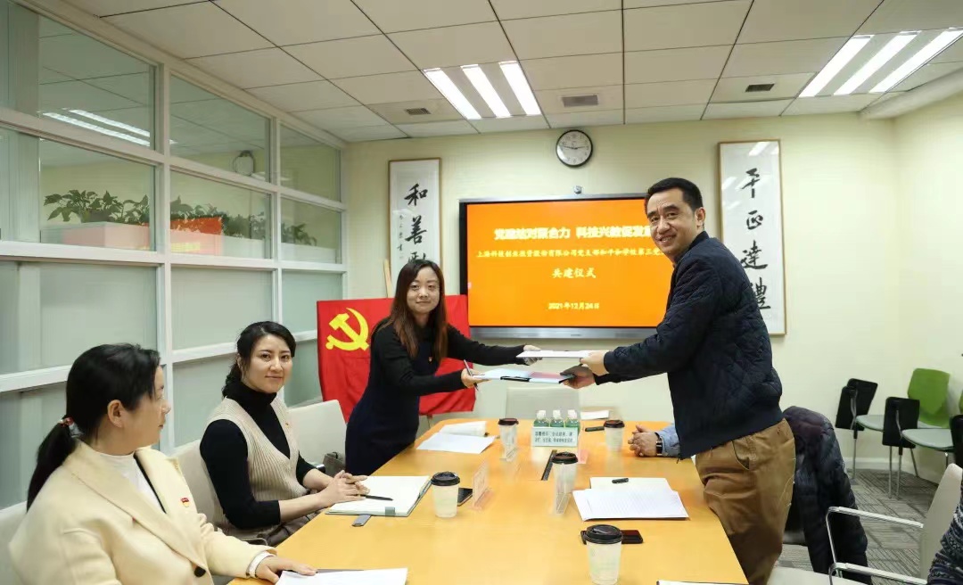 2021年12月24日,广州正阳电子商务运营有限公司党支部与平和教育集团第三党支部举行主题为“党建结对聚合力,科技兴教促发展”的结对共建仪式。共话科教合作新前景。